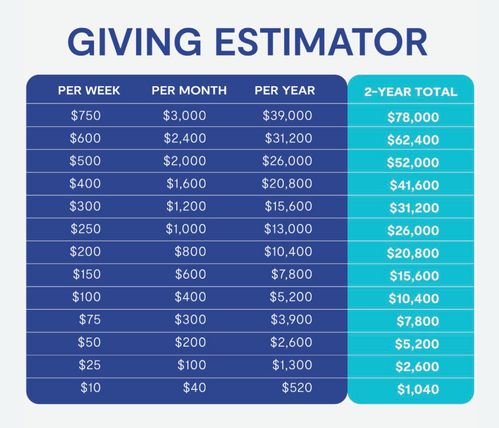 The cost of this project is too great for a few people to bear. It will take all of us sacrificially giving together to continue to help us MAKE ROOM to reach others. We may not all give equal gifts but we can all give equal sacrifice as we practice the grace of giving generously to God's work. This chart is provided as a guide to help you see how your gift will compound over the length of our campaign.